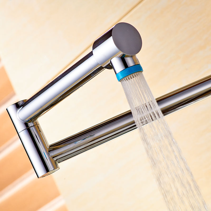 Kitchen sink folding faucet cold and hot water wash basin vegetable pool faucet lengthened stretchable rotating faucet all copper