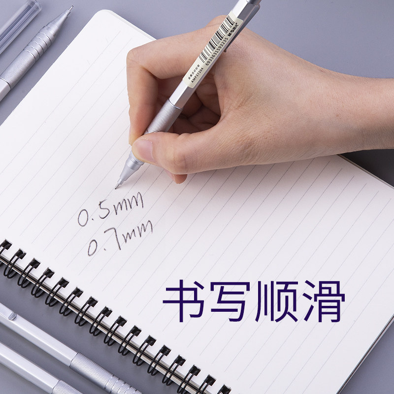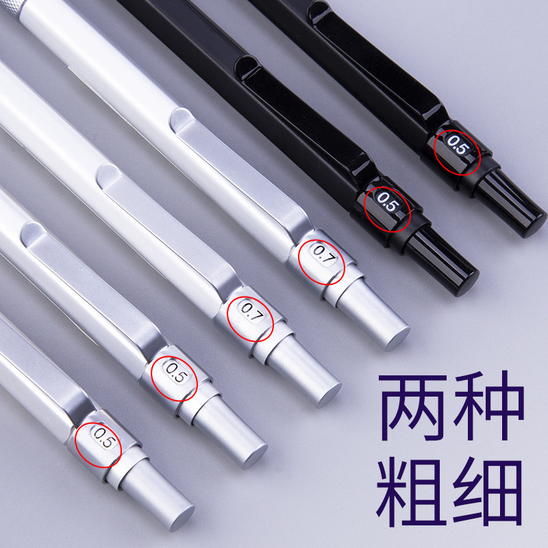 Free lettering morning light all-metal automatic pencil 0 5 low center of gravity 0 7mm primary school students 2B drawing sketch hand-painted ribbon eraser HB writing is not easy to break lead all-metal automatic pencil