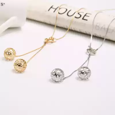 Korean simple hundred collocation decoration Lucky elf hollow ball sweater chain long version of crystal tassel necklace pendant female