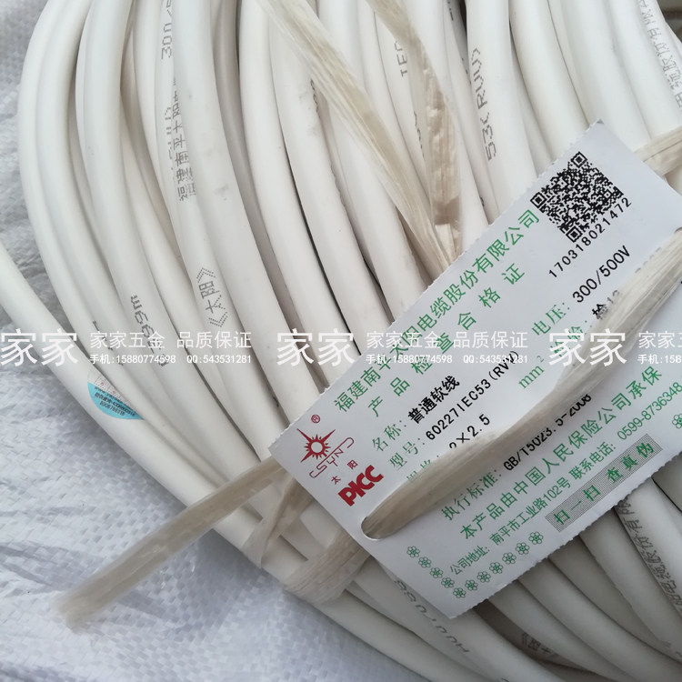 Sun brand RVV wire sheathed cable 2*1 1 5 2 5 4 6 white soft national standard RVVP