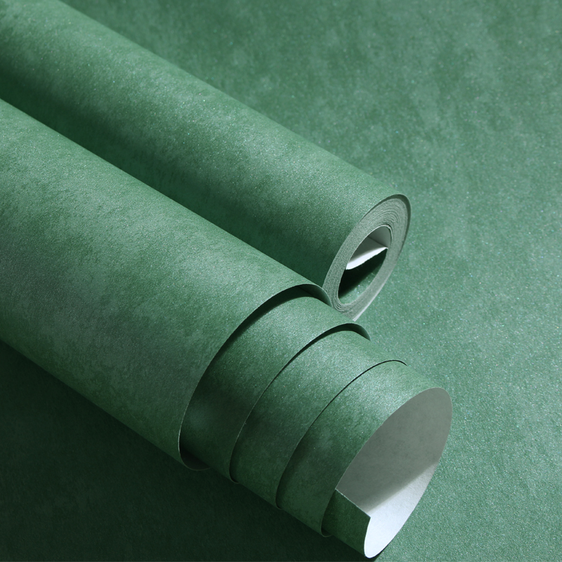 Pure Color Unwoven Fabric Wallpaper Nordic Dark Vegetarian Color Thickened Wallpaper Living Room Bedroom Retro Nostalgia American Ink Green