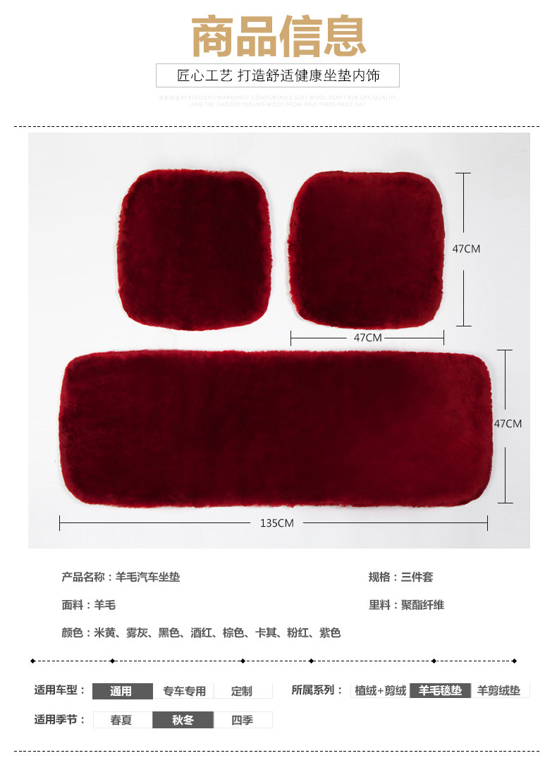 Car seat cushion wool three-piece winter short plush monolithic wool pad new non-slip tie-free seat cushion car cotton pad