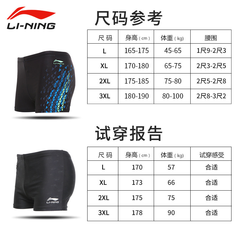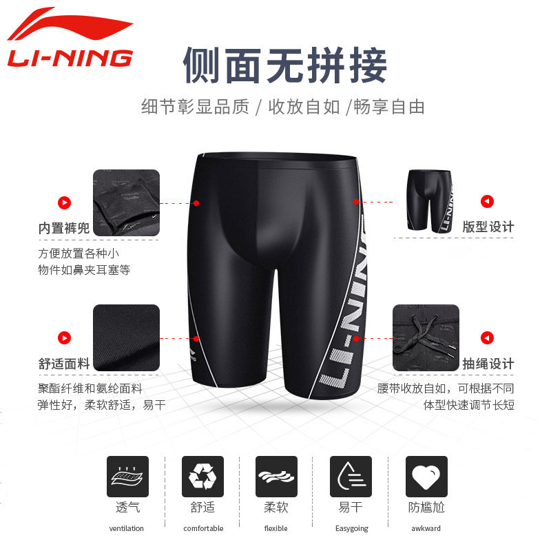 Li Ning swimming trunks men's five-point swimming trunks men's swimsuit anti-embarrassment hot spring professional large size swimming goggles swimming cap set