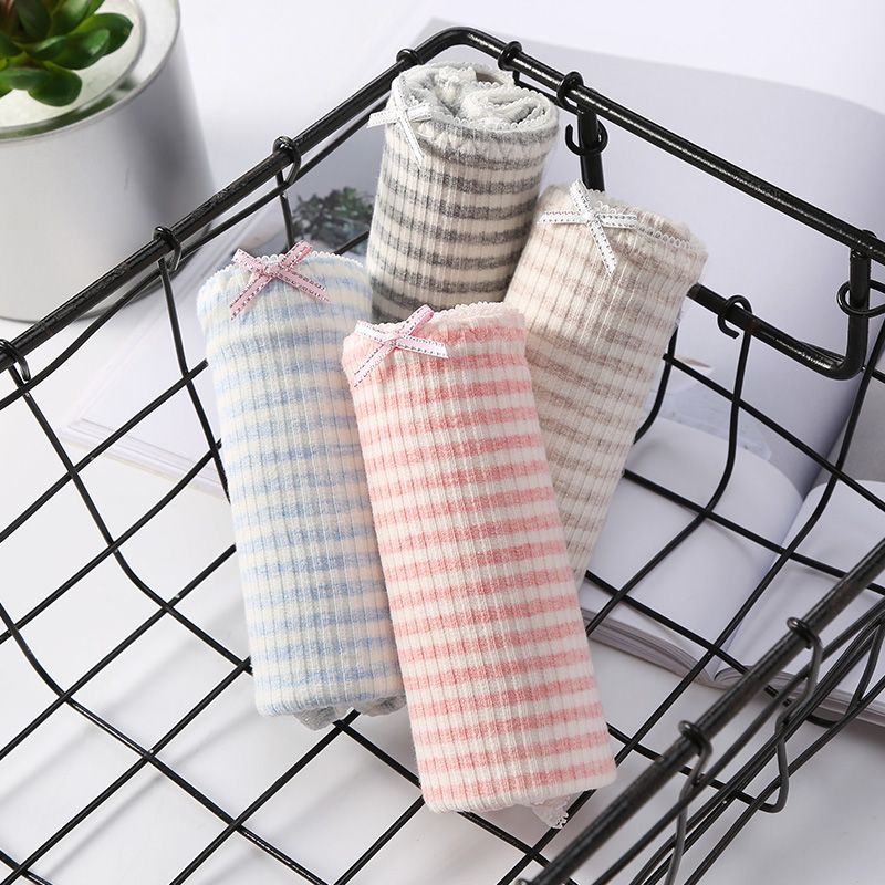 Fenteng new underwear women's pure cotton cotton mid-high waist Lace edge sexy striped briefs head four boxed