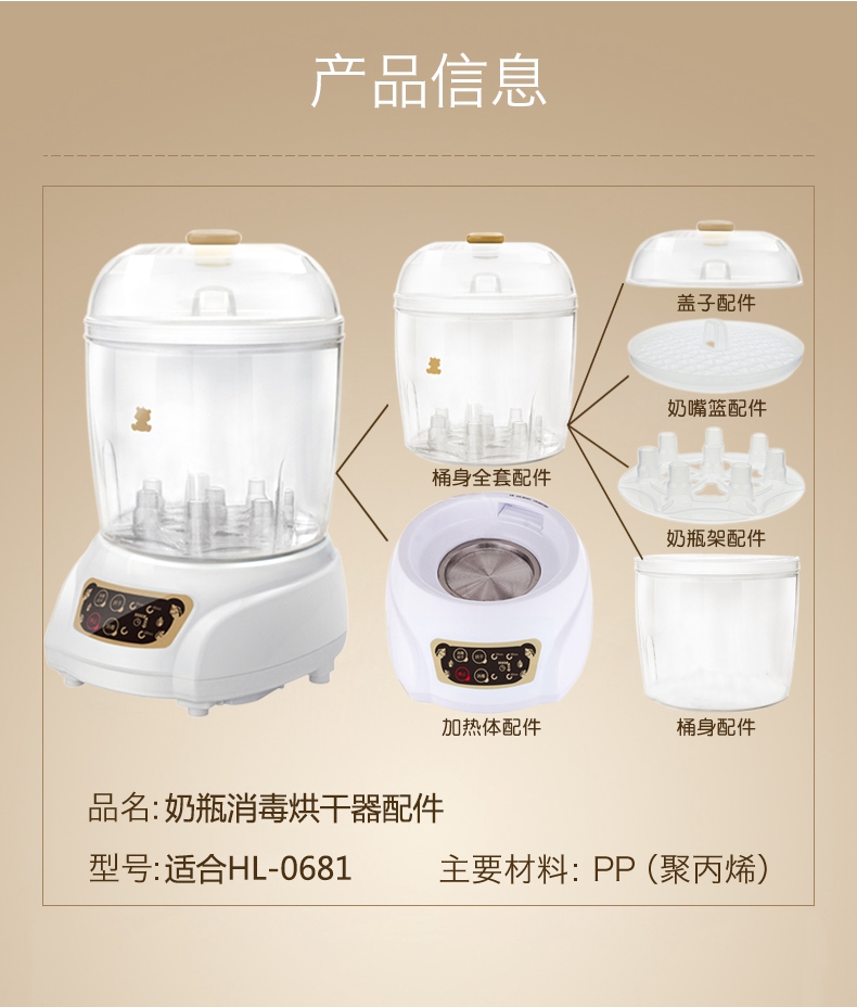 Small White Bear 0681 Milk Bottle Disinfection Pan Drying Machine Accessories Bucket Body Base Heating Body Pacifier Basket Bracket Lid