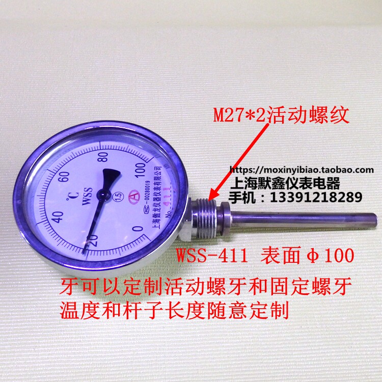 Shanghai Aolong Instrument Co., Ltd. Bimetal Thermometer WSS 401 411 Boiler Type