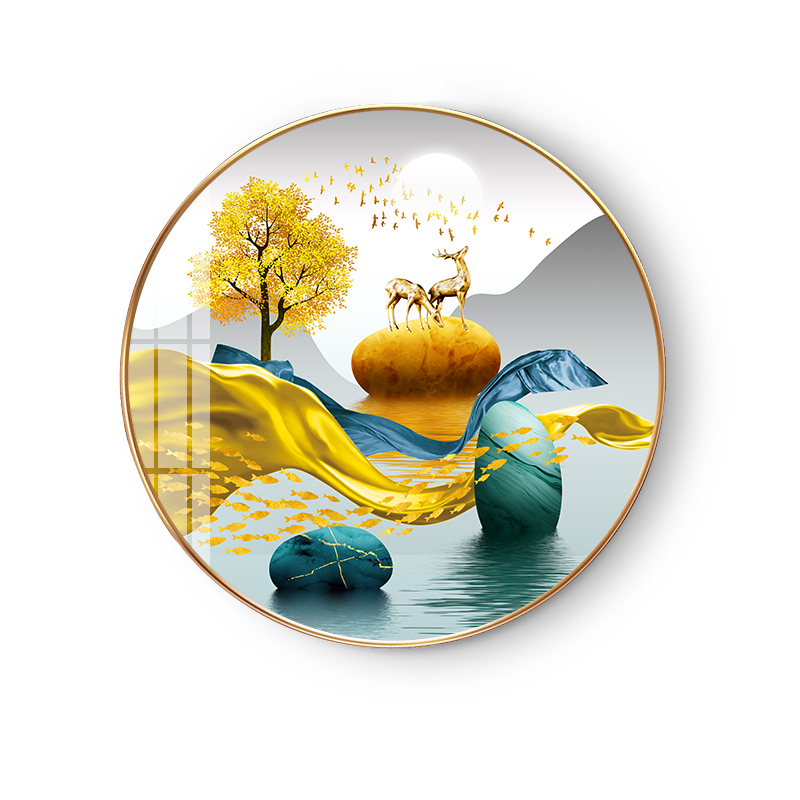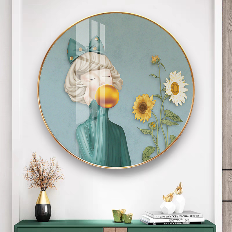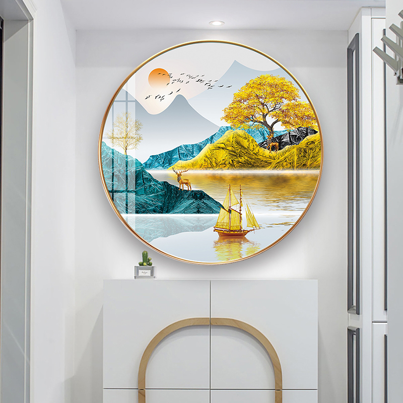 Light and luxurious entrance round Xuanguan Decorative Painting Corridor Aisle Background Wall Living Room Crystal Porcelain Mural Dining Room Dining Table Hanging Painting