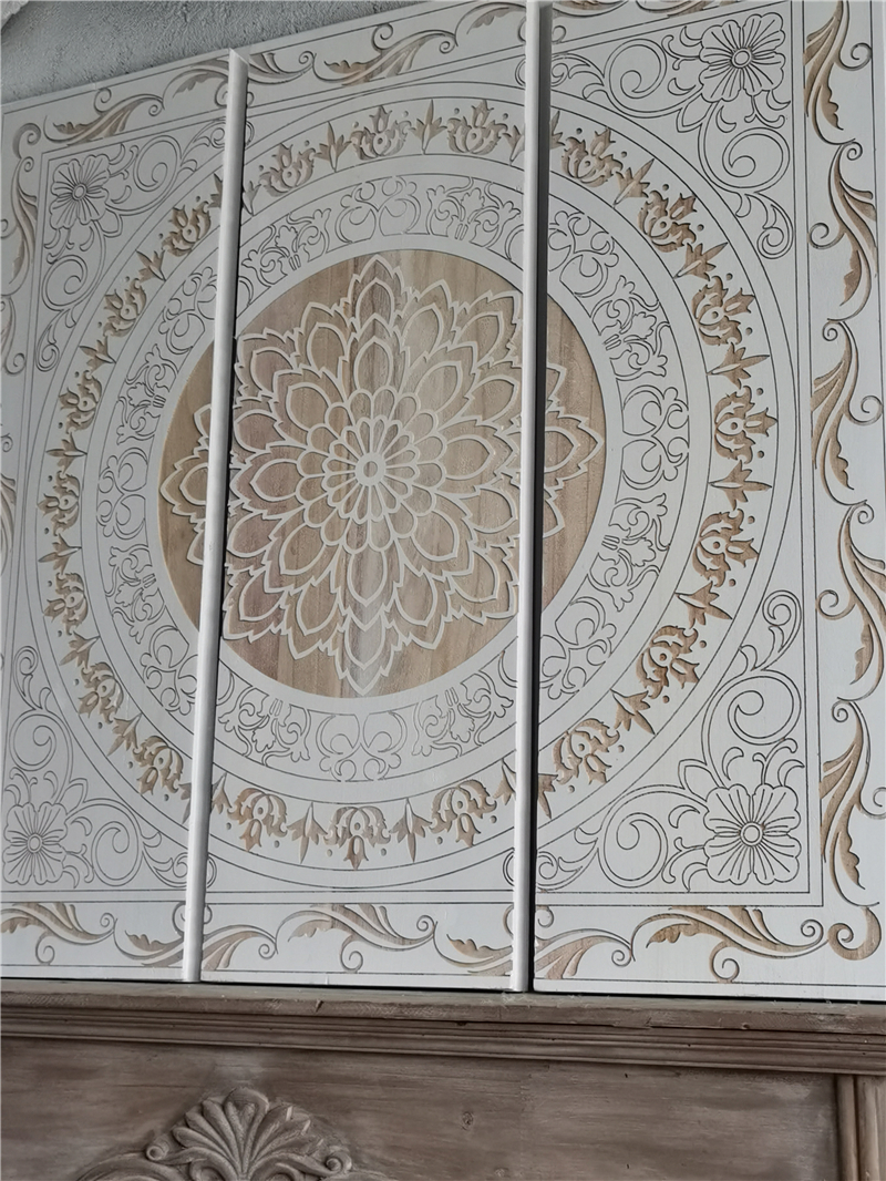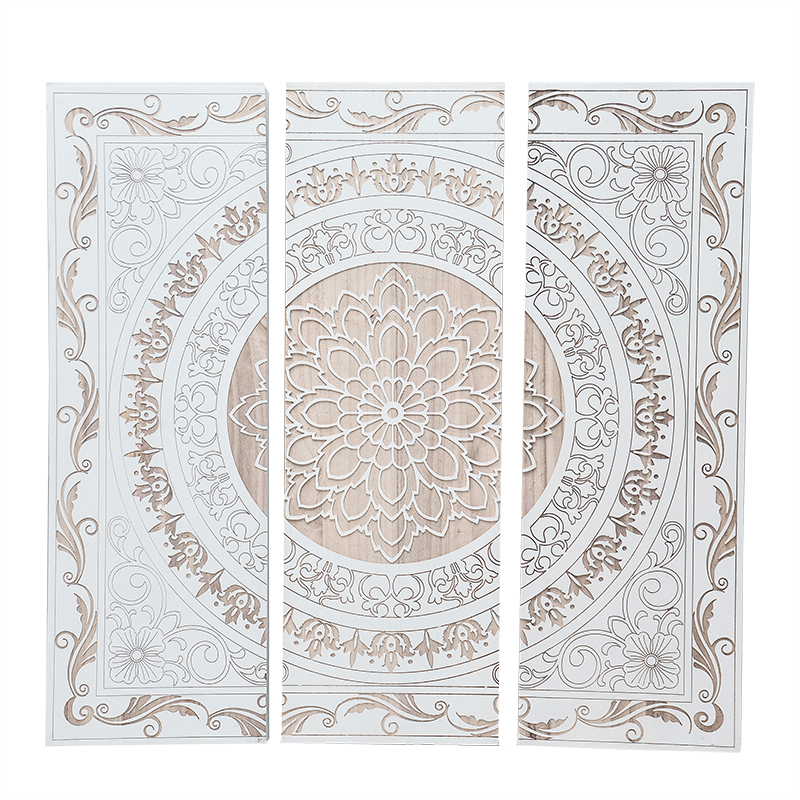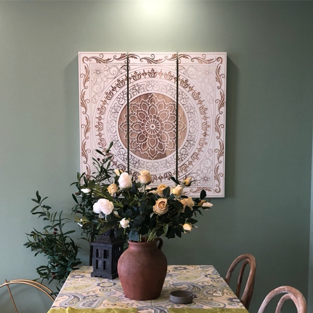 Moroccan style Minjuku studio retro craftsmanship solid wood engraving mural Xuanguan Background soft decoration 3 pieces of cover