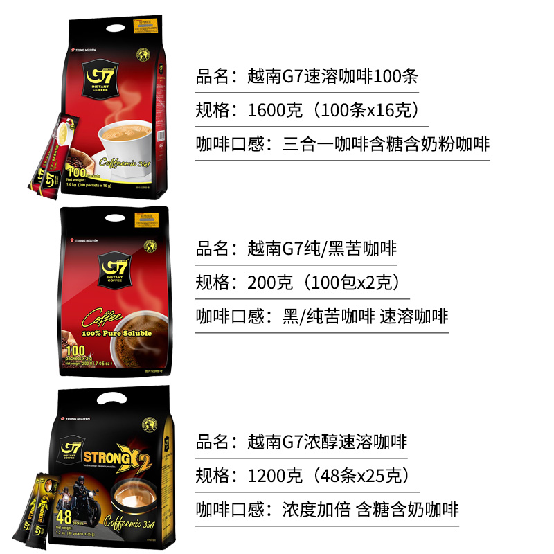 Vietnam imported Zhongyuan G7 coffee refreshing student 1600g Three-in-one instant coffee powder 100 pieces