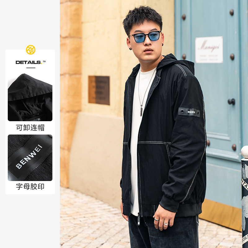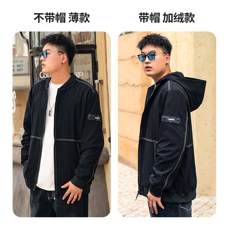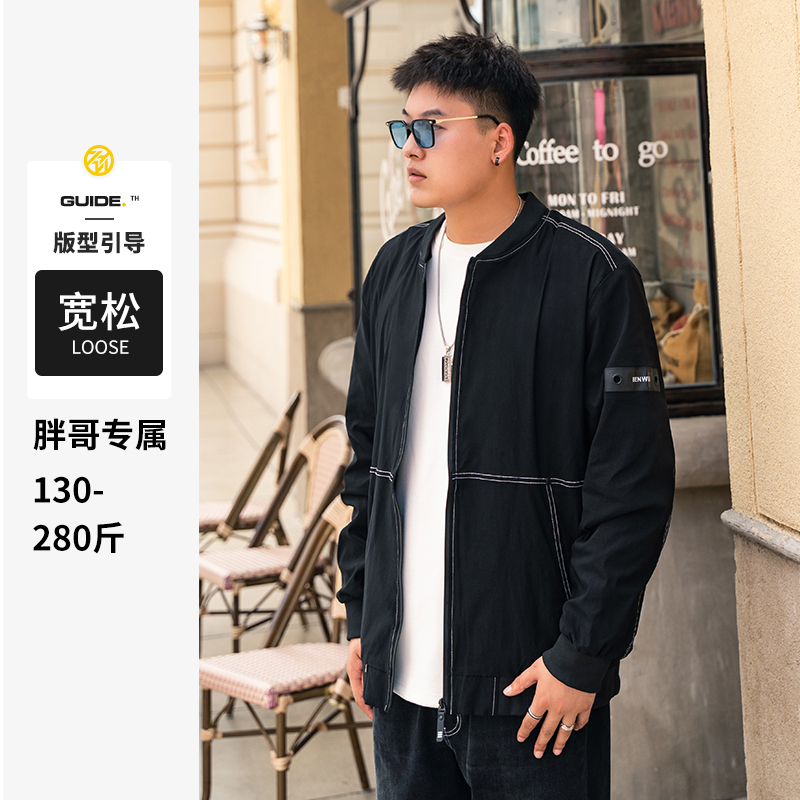 Black Power Brand large size men's fat men's coat to weigh and relax leisure spring and autumn jacket baseball suit