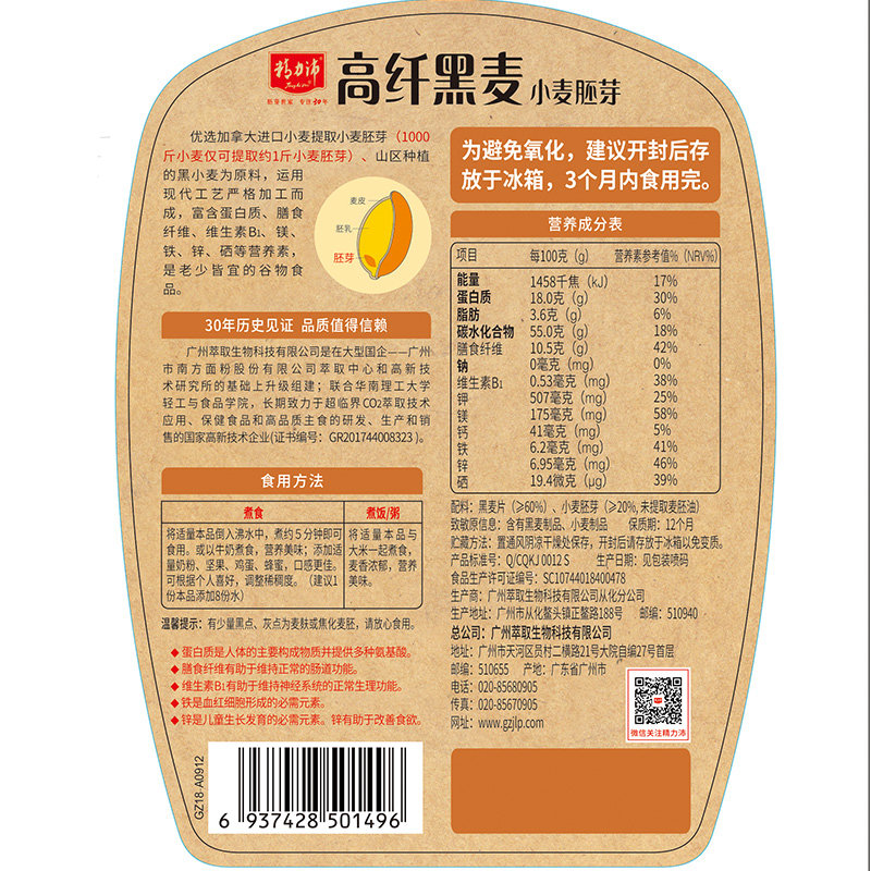 Energetic and high fiber rye wheat germ cereal breakfast cereal with dark wheat flakes rich selenium germ 968gX2 jar