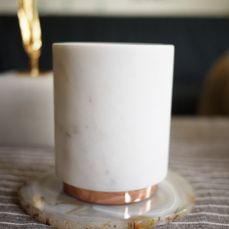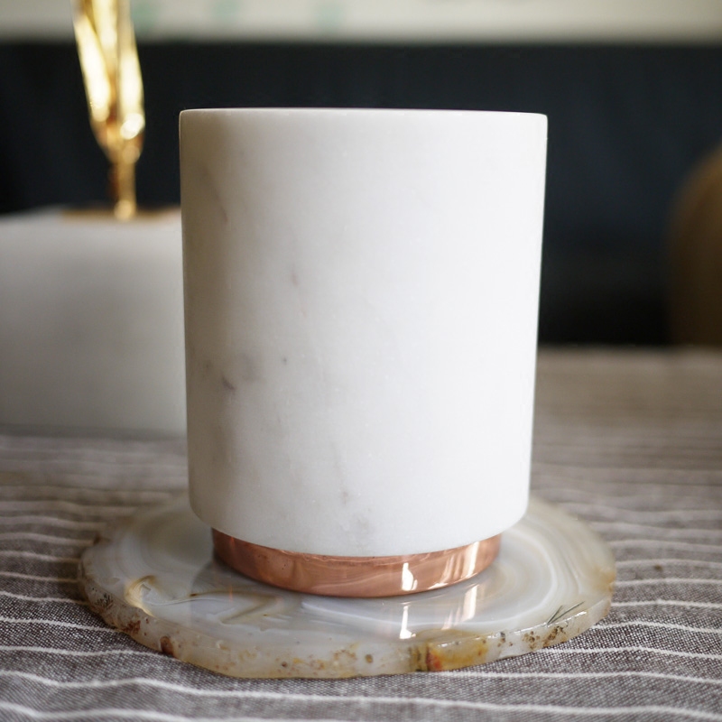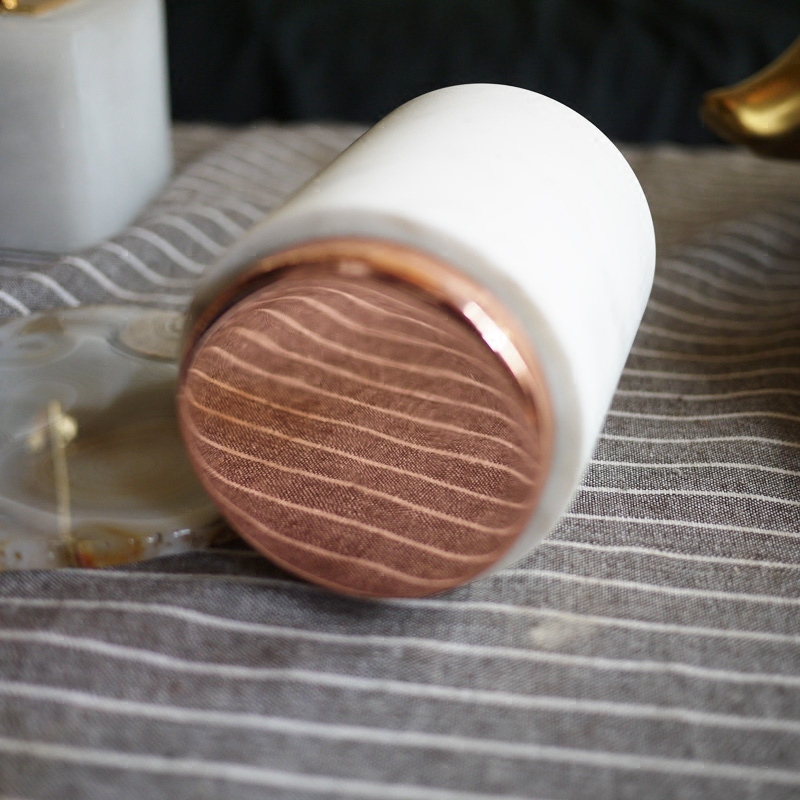 W1962 Nordic style Indian imports marble matching rose gold cylindrical candle holder brief pen holder pendulum piece