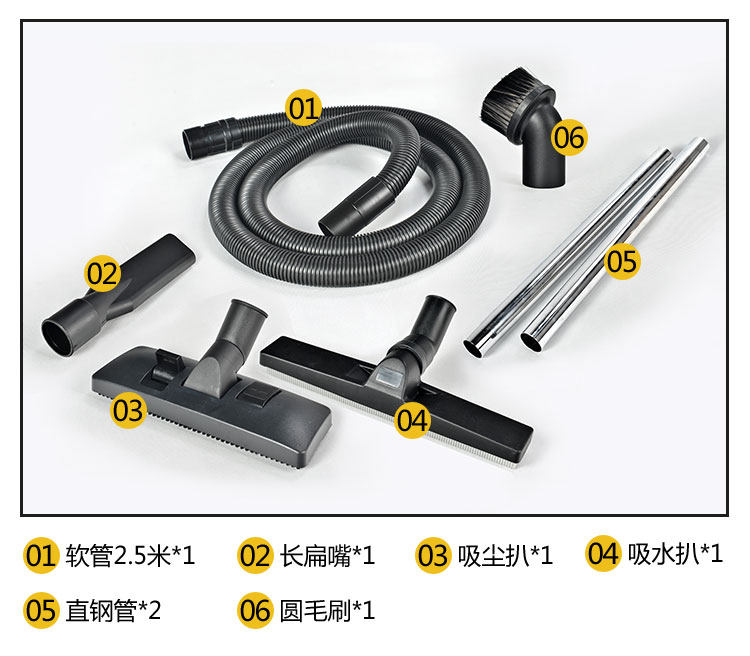 Large accessory set Small accessory set Large hose long connector 5 meters large hose with connector Large vacuum pick Large suction pick Long flat mouth Large round brush hose short connector 30L dust separator 70L dust separator