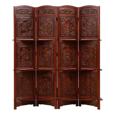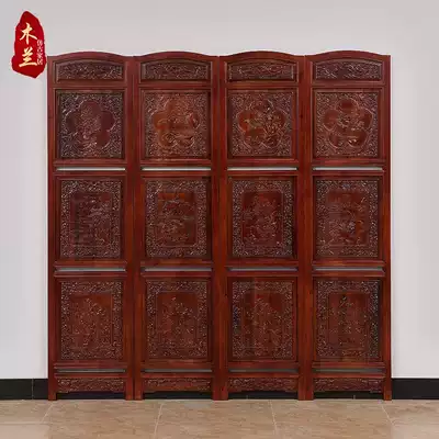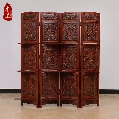 Classical wood carving Chinese log folding screen fragrant camphor wood double-sided carving hotel lobby living room entrance screen