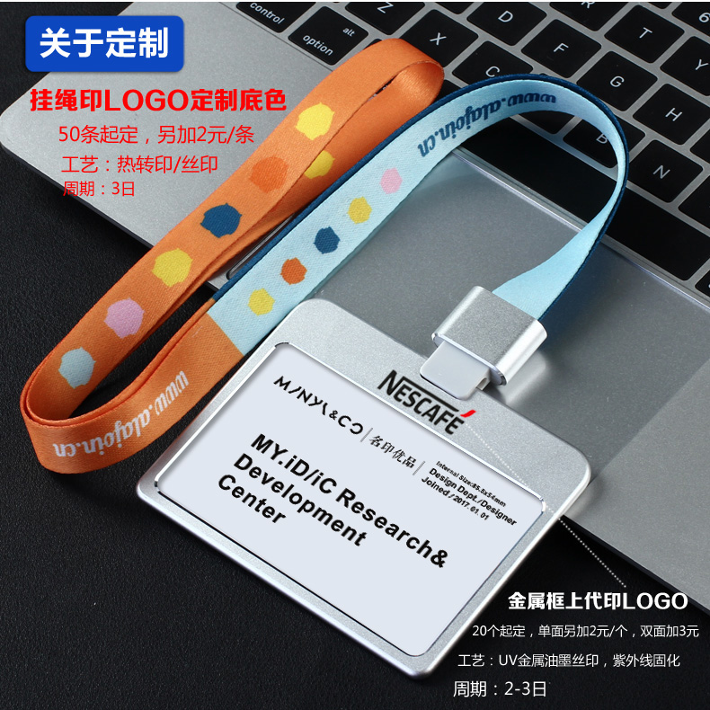 Cross-style high-end hanging rope aluminium alloy work card certificate of work card chest card Chest Card Sleeve Factory Card Employee Student School Card Protective Sleeve Cardable can customize LOGO exhibition work certificate