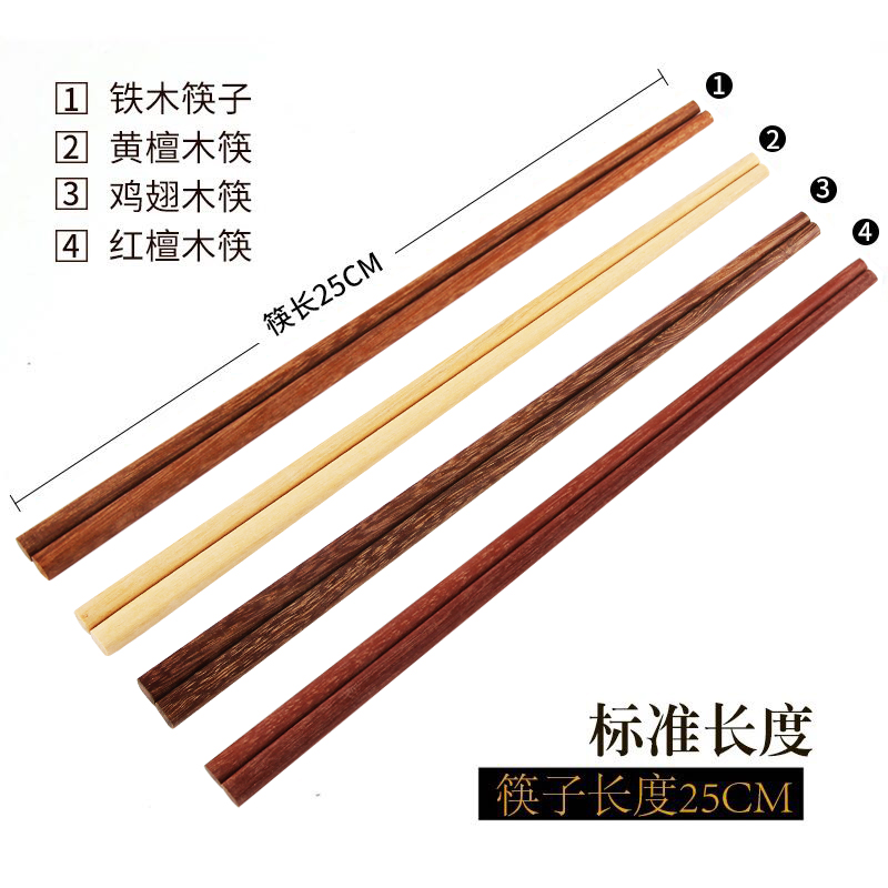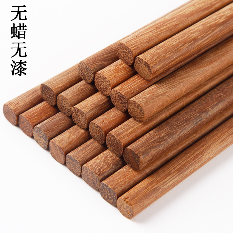 Chopsticks solid wood household Chinese paint-free wax-free chicken wing wood red sandalwood bamboo fast food tableware 10 pairs of family set 20