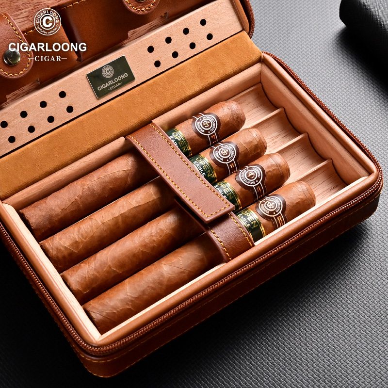 CIGARLOONG EGGPLANT CIGAR CIGARETTE CASE LEATHER SUIT MOISTURIZING BOX MOISTURIZING BOX PORTABLE CEDAR WOOD MOISTURIZING CABINET