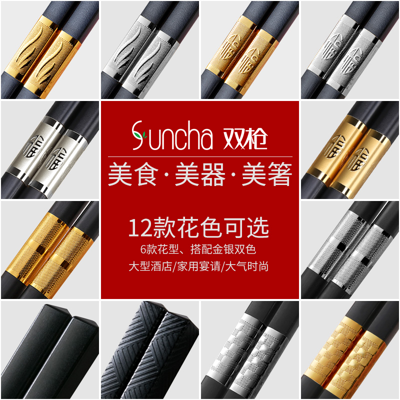Double gun family stainless steel non-steel household alloy chopsticks set Hotel Japan and South Korea non-slip 30 double tableware