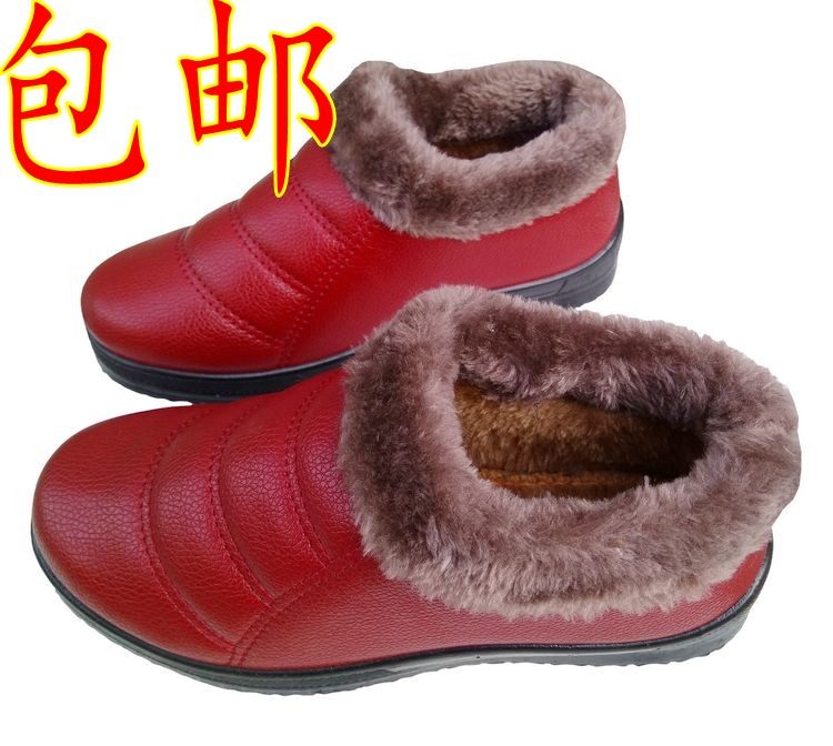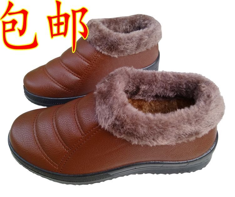 Winter Old Beijing Cotton Shoes Men And Women Non-slip Warm Leather Cotton Shoes Middle Aged Thick Bottom Pu Face Flat Bottom Mother Grandma Shoes