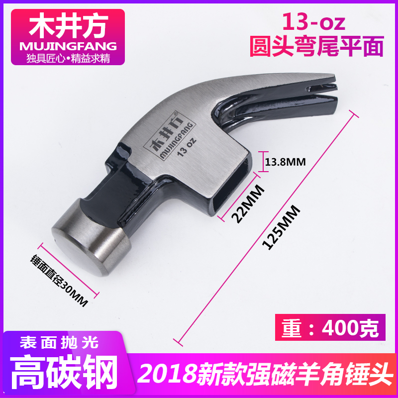 Wooden well square wooden handle Sheep horn hammer hammer Woodworking hammer pull nail hammer Small hammer tool Splint handle hammer hammer hammer