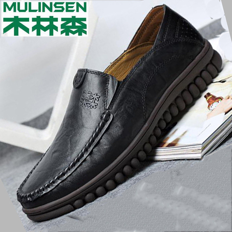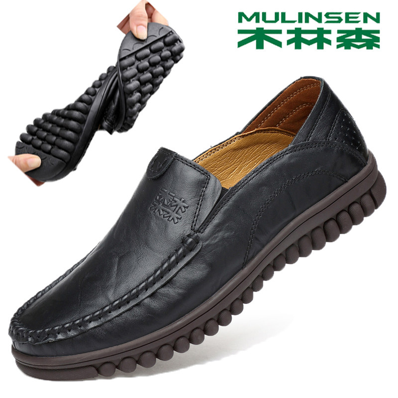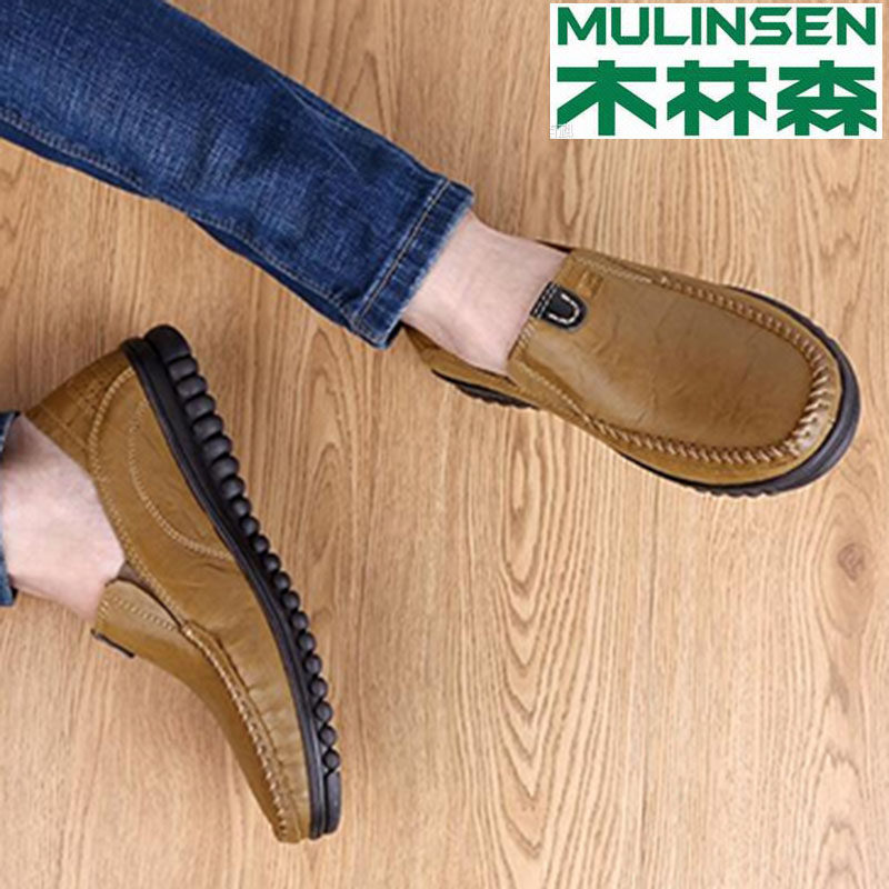 Wood Linson Men Genuine Leather Inglén Casual Leather Shoes Driving Shoes Men's Bean Shoes Soft Bottom Dad Shoes Big Code Sloth Shoes-Taobao