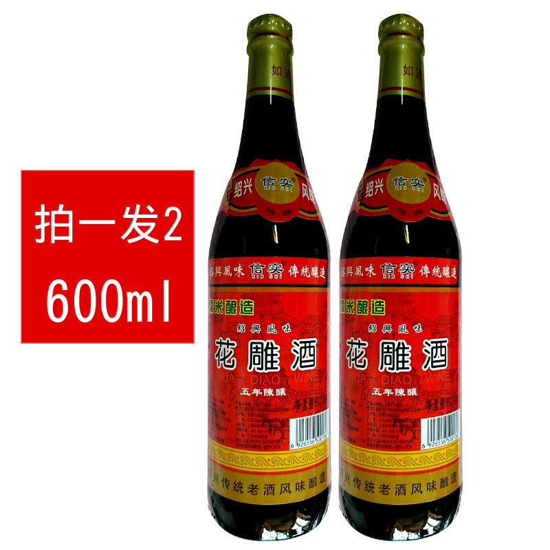 1 group 2 bottles of national letter real Shaoxing flower carving wine 600ml * 2 Shaoxing flavor glutinous rice brewing for five years