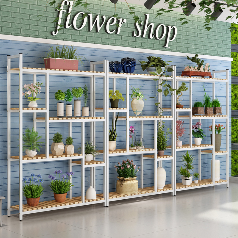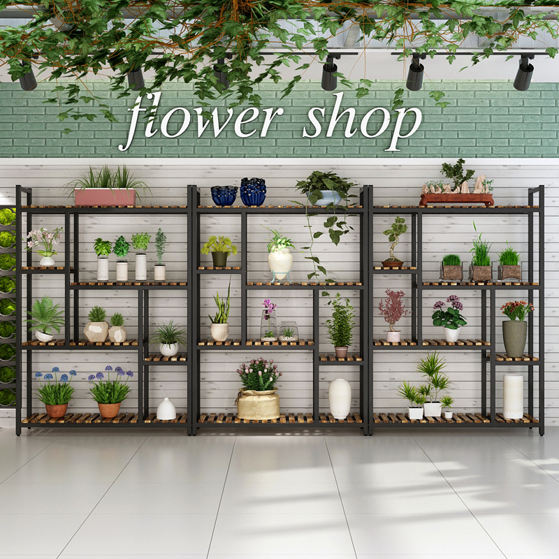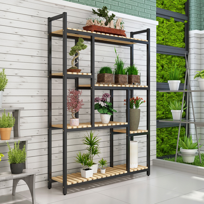 Simple balcony flower rack storage rack wrought iron solid wood multi-layer flower rack indoor flower rack floor-standing hanging orchid flower rack