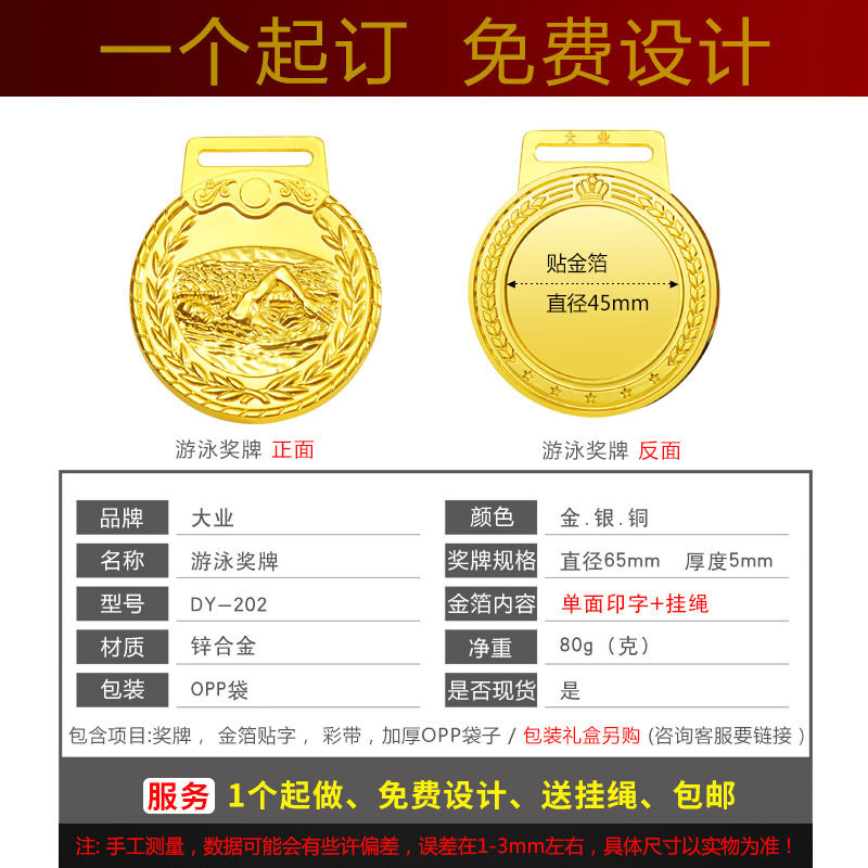 Swimming medal metal medal set as gold foil customized universal winter swimming event to mark gold medal of gold medal