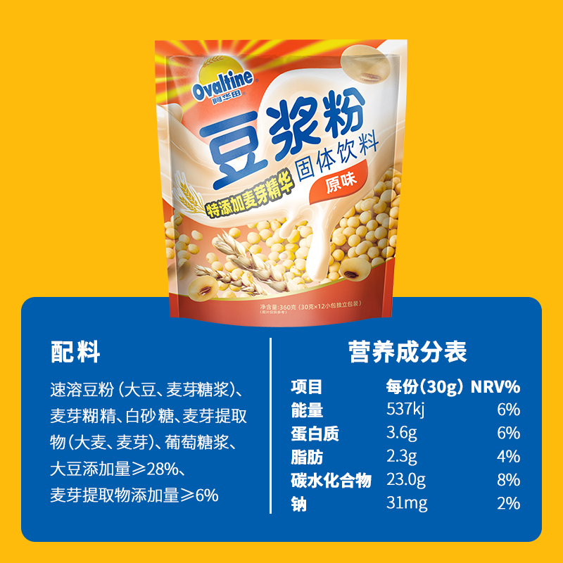 Ah Hua Tian official flagship store official website classic original sweet soy milk powder cold soaked breakfast brewed soy milk 30g * 12 pieces