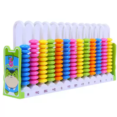 First and second grade elementary school students mathematics addition and subtraction calculation frame 9 12 13 line counter trillion vertical beads