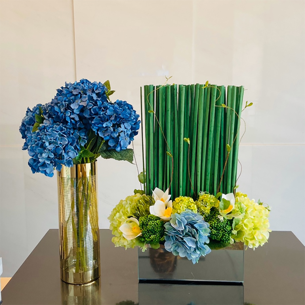 Living room European American dining table flower arrangement fake hydrangea soft model room high artificial flower ornaments flower art