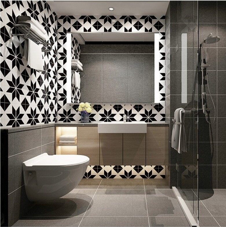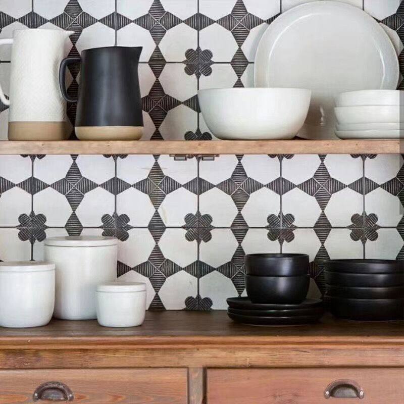 Nordic Style Black & White Geometric Flowers Brick Kitchen Makeup Room Floor Tiles Dining Room Wall Brick Background Wall Flower Sheet 300