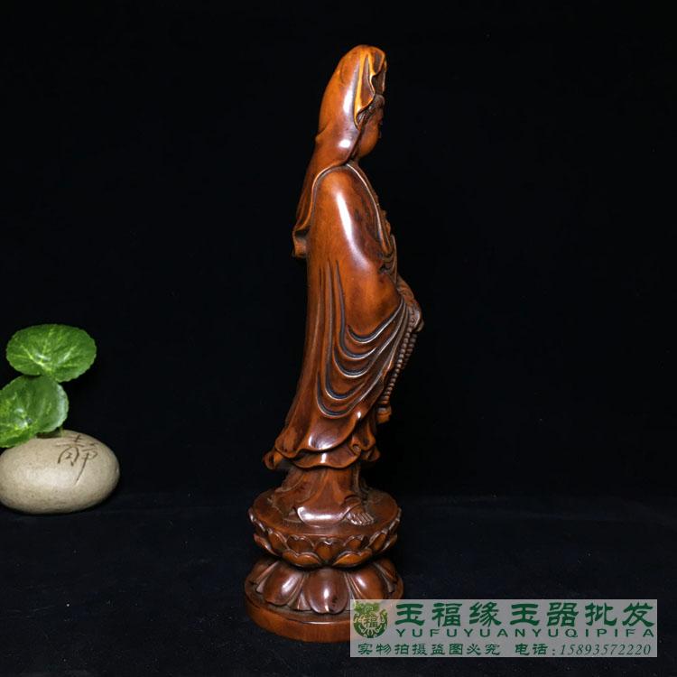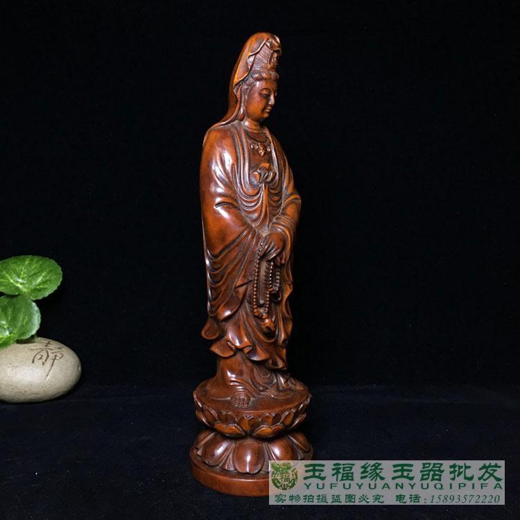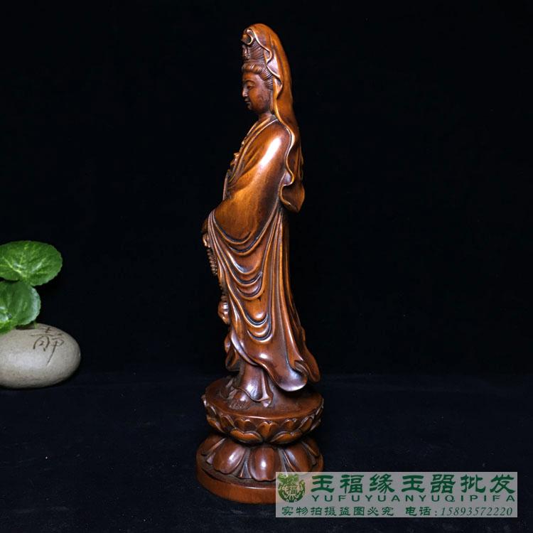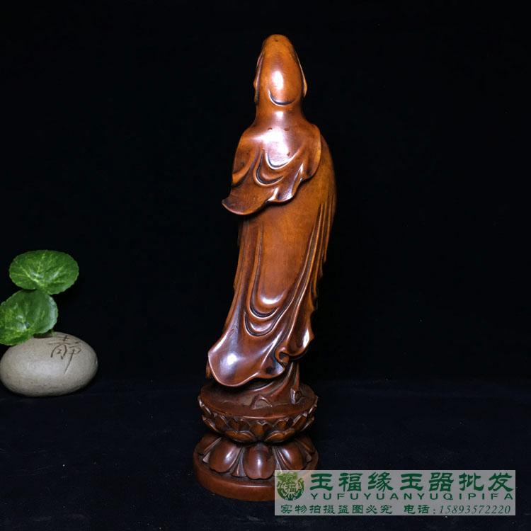 Antique Miscellaneous Antique Wood Carving Ornament Lotus Guanyin Buddha Statue Wood Carving Boxwood Station Guanyin Buddha Statue Ornament