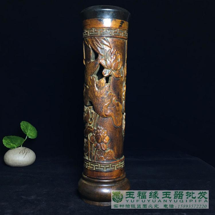Antique ancient playing collection Jiaoxiang furniture hollowed out by hand engraving Old wood ware Incense Barrel Ancient Play Miscellaneous Old Objects
