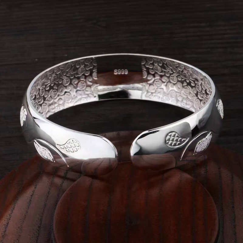 999 pure silver bracelet woman one thousand foot silver ornament opening bracelet birthday present to girlfriend wife mom and grandma