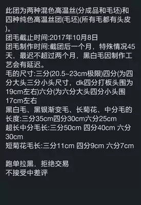 cubeco bjd wig 3 points 4 points 6 points high temperature silk blank hair black and white gradient spot can be shot