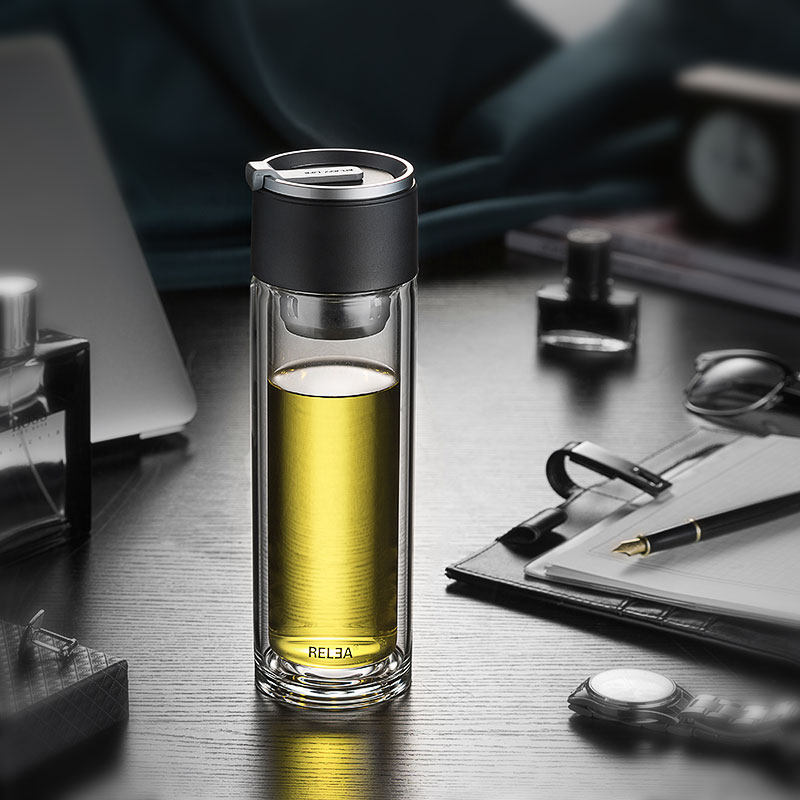 Biological glass Double anti-scalding portable tea cup with lid Office business men and women creative filter water cup