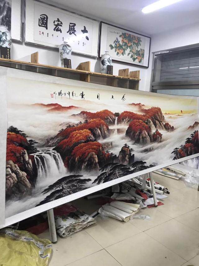 Taishan Sunrise Hongyun Dangtou Chinese Painting Painting Rising Sun Dongsheng Landscape Painting Feng Shui Painting Red Landscape Living Room Decoration Painting