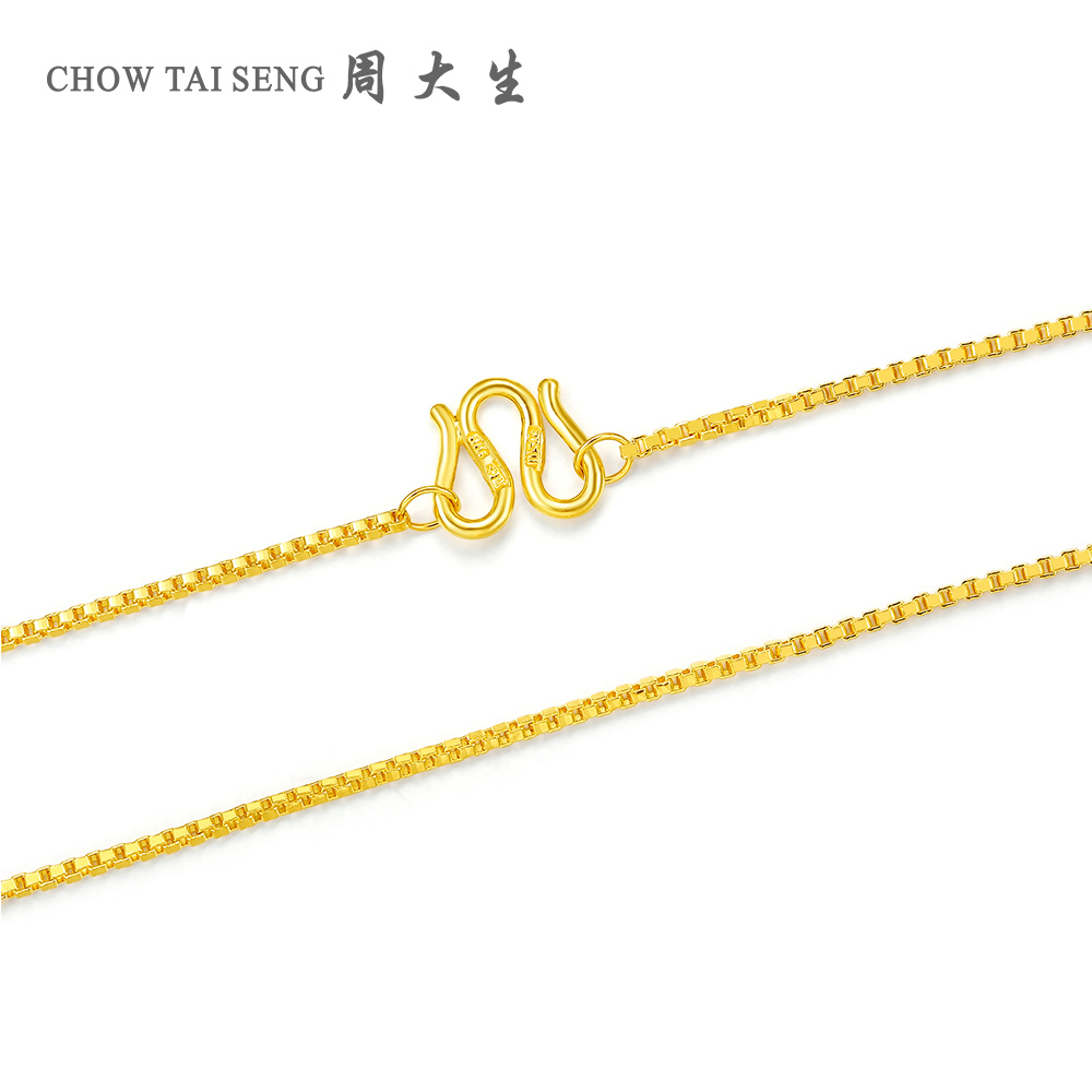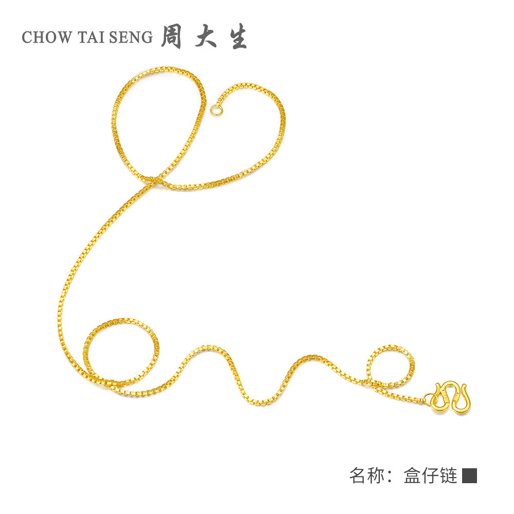 Zhou Dasheng gold necklace women's gold simple box chain w buckle can be matched with pendant clavicle chain gold chain