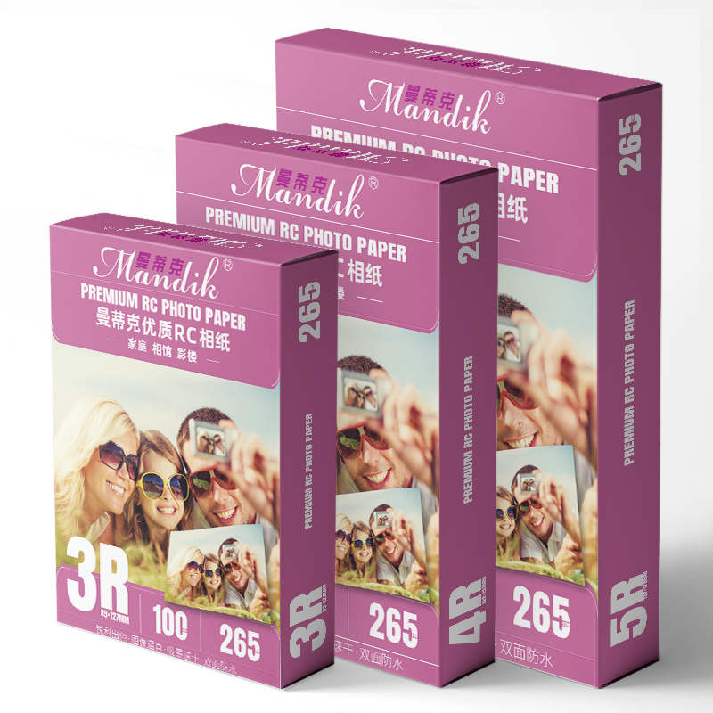 5 inch RC high gloss 265 grams 6000 sheets Box 5 inch RC fine fleece 265 grams 6000 sheets Box 5 inch RC coarse fleece 265 grams 6000 sheets Box 5 inch RC silk surface 265 grams 6000 sheets Box 6 inch RC high gloss 265 grams 4800 sheets Box 6 inch RC fine velvet 265 grams 4800 sheets Box 6 inch RC coarse velvet 265 grams 4800 sheets Box 6 inch RC silk surface 265 grams 4800 sheets Box 7 inch RC high gloss 265 grams 3000 sheets box 7 inch RC fine velvet 265 grams 3000 pieces box 7 inch RC coarse velvet 265 g 3000 sheets Box 7 inch RC silk surface 265 grams 3000 sheets Box A4-RC high gloss 265 grams 1200 sheets Box A4-RC fine fleece 265 grams 1200 sheets Box A4-RC coarse velvet 265 grams 1200 sheets Box A4-RC silk surface 265 grams 1200 sheets Box