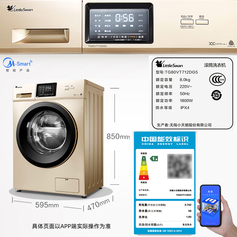 Small swan 8 kg KG fully automatic drum home washing machine frequency conversion smart TG80VT712DG5
