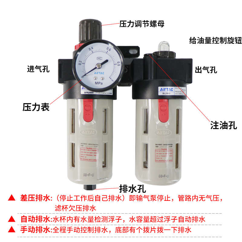Yadke pressure regulating valve pneumatic air source treatment two-piece BFC2000 air compressor oil-water separator filter BFR