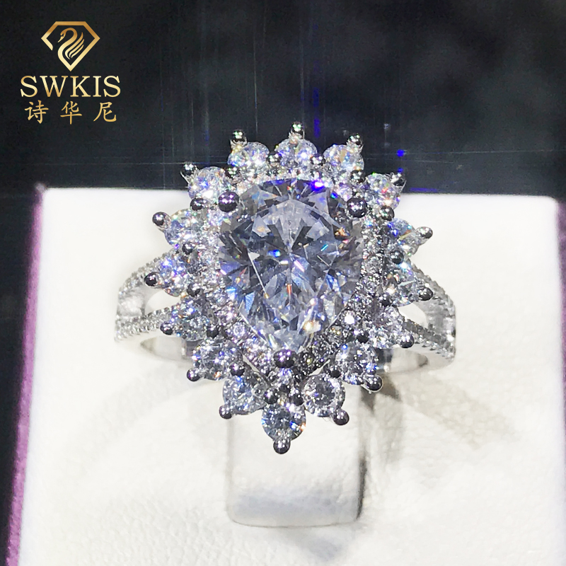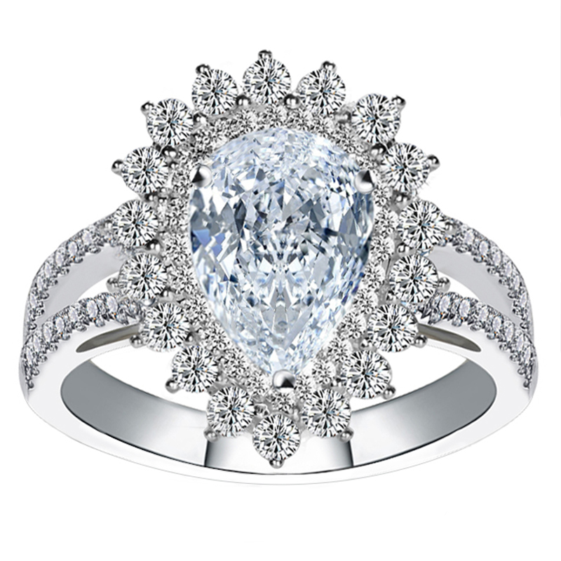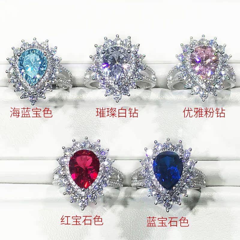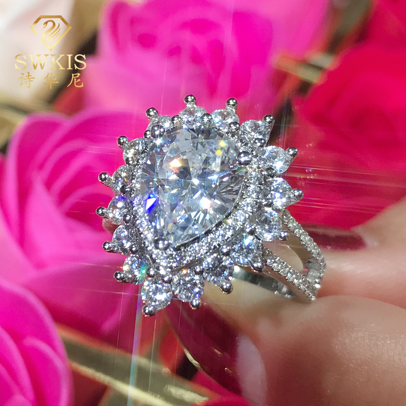 Pear Shaped Large Diamond Ring 3 Carat Women 925 Silver Exaggeration Luxurious Drop Shaped Emulation Synthetic Ruby Sapphire Ring