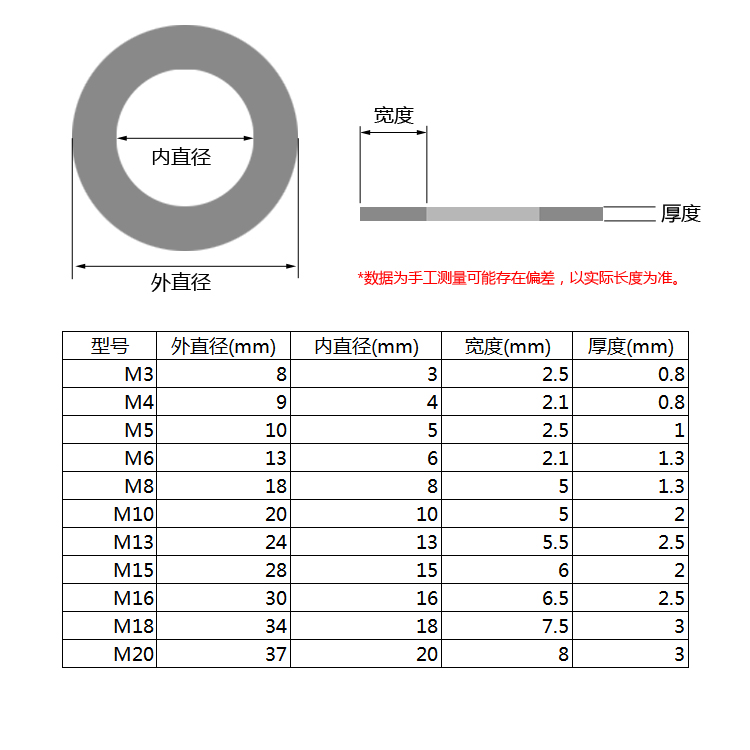High carbon steel flat gasket gasket mesons M3M4M5M6M8M10M12M14