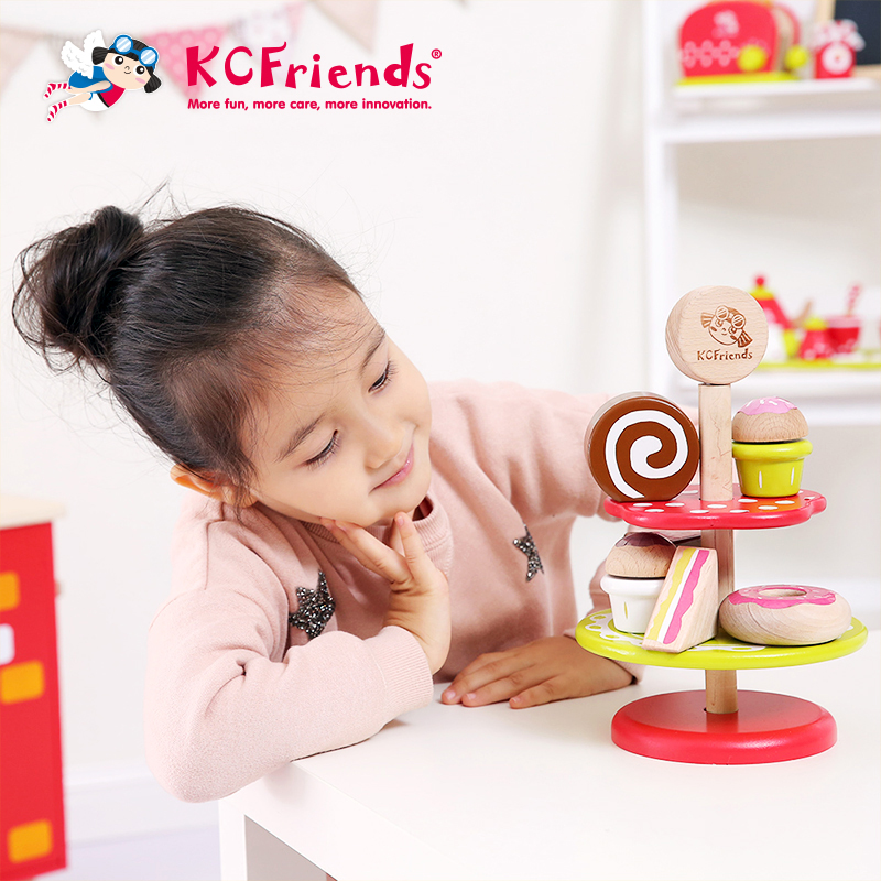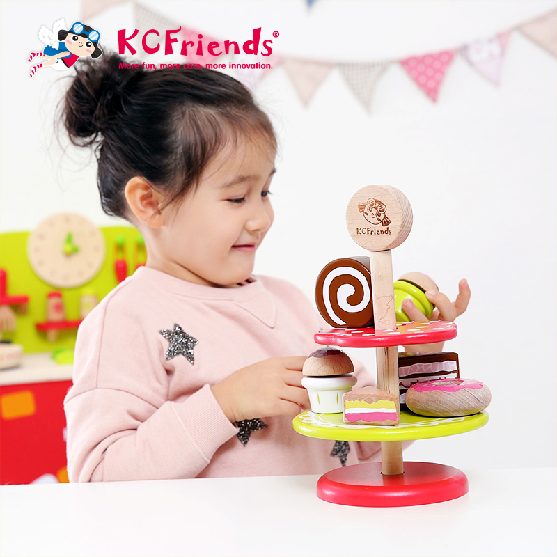 KCFriends wooden cake stand assembled children's early education simulation play house kitchen toys for three-year-old boys and girls