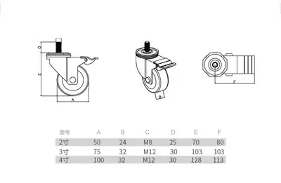 2 inch M8 screw with brake 2 inch M8 screw without brake 2 inch M10 screw with brake 2 inch M10 screw without brake 3 inch M10 screw with brake 3 inch M10 screw without brake