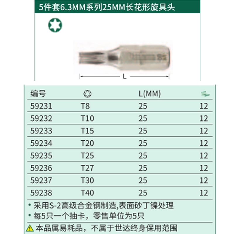 SATA Shida Tool Florid head length 25MM6 3MM Small flying series 59231 59232 59233-Taobao
