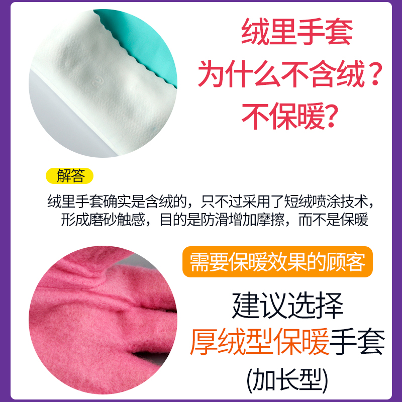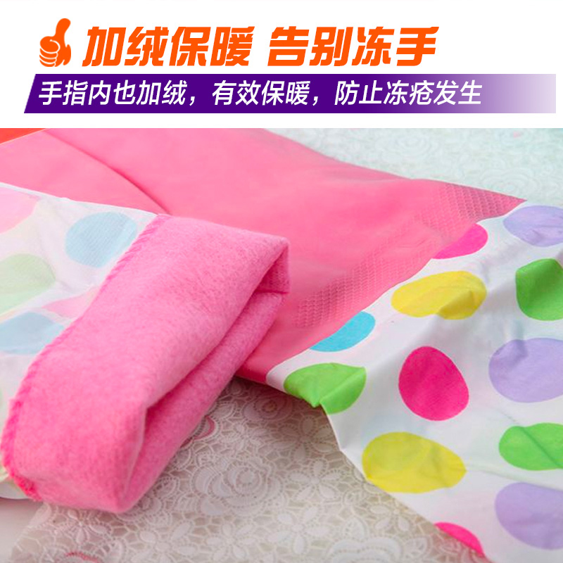 Inexplicable thickening Warm Lengthened Rubber Gloves Wash Clothes Kitchen housework Garnapping anti-chill and tasteless flocking