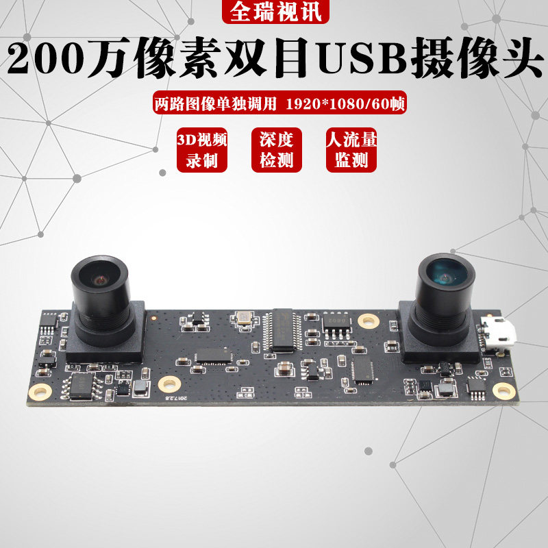 High-definition binocular USB camera 3D stereo camera module dual-lens human eye simulation high-definition 1080P video