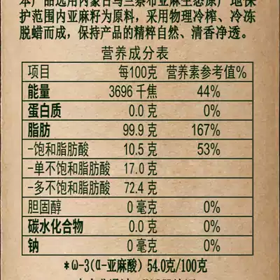 Flax Commune First Class Cold Pressed Flaxseed Oil 250ml Dewaxing Hemp Seed Oil Edible Oil Inner Mongolia Flax Oil